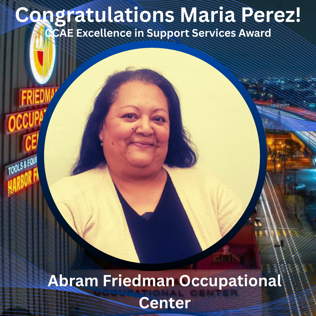 AFOC is celebrating Maria Perez, recipient of the CCAE Excellence in Support Services Award